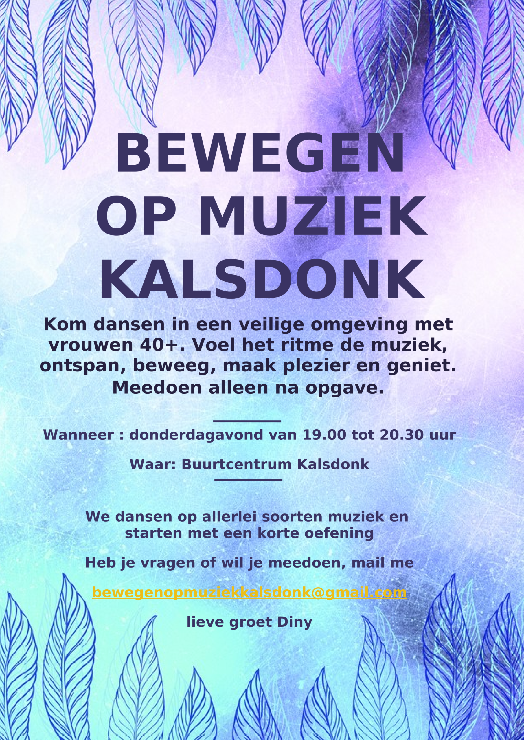 Van de vaste wekelijkse momenten is er een lijst; deze is ook op papier in het buurtcentrum te verkrijgen.